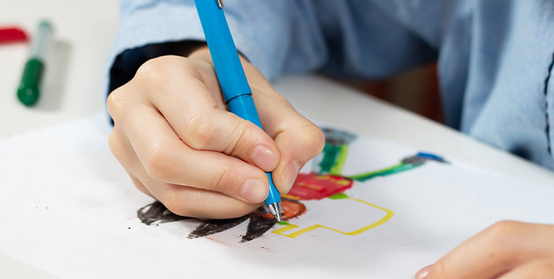 Przybory do pisania powinny być wyprofilowane, tak by dziecko mogło je chwytać bez najmniejszej trudności. Nie mogą ześlizgiwać się z palców. To ważne w nauce prawidłowego pisania.